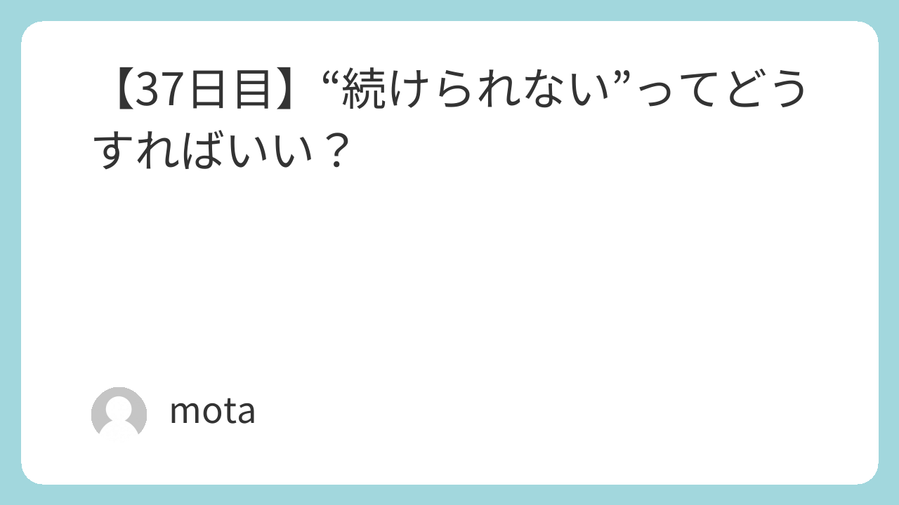【37日目】“続けられない”ってどうすればいい?