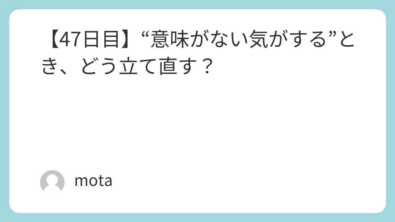 【47日目】“意味がない気がする”とき、どう立て直す?