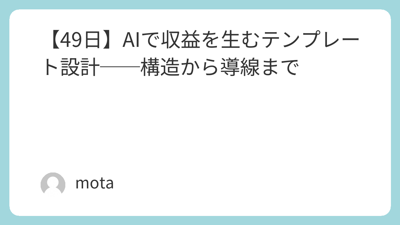 今回はその第一歩として、「収益を生むテンプレート」をAIと一緒に設計してみます。